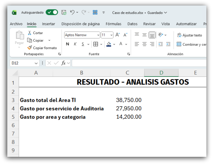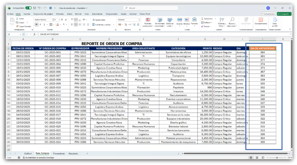 Caso de Estudio – Optimización del análisis de compras usando fórmulas de Excel
